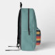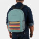 A modern teal and retro stripes colour block backpack is best for anyone. The retro stripes hue adds a touch of vintage vibe, while the modern typography name adds a personal touch.