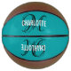 Modern basketball with a script monogram and a white typography name on a teal background. Personalize name and initial.