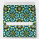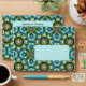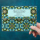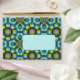 This teal tile patterned envelope is printed inside and out with a modern kaleidoscope print and has a customizable return address printed on the outer flap on the back. The front has a plain teal area to write the recipient's address on.
