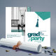 A minimalist teal tassel graphic and bold “grad party” headline pairs with a clean photo layout and contemporary design for a stylish, editorial look. Fully customizable colors, text, and photo make it easy to create a unique invitation for your graduate.
