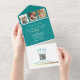 Embrace the timeless charm of simplicity with our modern all-in-one wedding invitation in white and teal. Enhanced by a graceful gold rope heart and simple calligraphy script, this invitation exudes elegance. Personalize it with four custom photos of the couple, capturing the essence of your love story. Include your wedding website and a QR code for seamless RSVP and access to additional information. Set the stage for your special day with this sophisticated invitation, where every detail reflects the beauty of your union.