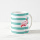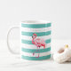 Modern teal and white stripes pink flamingo custom name coffee mug.