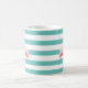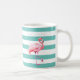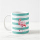 Modern Teal White Stripe Pink Flamingo Custom Name Coffee Mug