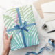 Modern teal yellow tropical palm trees pattern wrapping paper