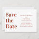 These save the date cards feature a modern and elegant terra cotta and white design. "Save the Date" is printed in a large font on the left side. The wedding or event information is printed on the right.