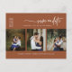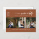 This save the date postcard features an elegant modern minimalist style of a three (tri) photo collage with a modern calligraphy of the wording "Save the Date" and elegant Serif fonts for a clean minimalist and modern look on a terracotta background, which is a beautiful way to inform about your upcoming wedding. Announce to your family and friends you are getting married with this save the date postcard and add a personal touch with beautiful pictures of you and your soon-to-be better half. The simplicity of this design adds a touch of elegance to your wedding. It works well with many wedding themes and definitely a great addition to your wedding. Just customize the names and wording in a few easy steps and personalize the postcard with your photo of the happy couple and replace the QR Code with yours.
