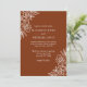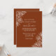 Celebrate your special day with our stunning wedding invitation, showcasing a seamless combination of simple typography and a captivating floral design. Against a rich terracotta coloured background, this invitation radiates charm and elegance. The gentle floral elements add a touch of natural beauty, while the understated typography maintains a timeless appeal. Ideal for couples seeking a classic and sophisticated wedding invitation, this design is sure to leave a lasting impression.