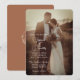 Elevate your wedding with our modern and elegant invitation design. Featuring classic typography and swirling calligraphy over a beautiful photo of the couple, this design adds a touch of sophistication with its stylish burnt orange colour on the back. Personalize the invitation with your own photo, details, colours, and fonts to create a unique and unforgettable invitation that reflects your personal style. Perfect for couples seeking a simple yet formal wedding invitation that makes a statement on their big day.