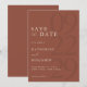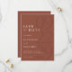 Easily personalize your wedding save the date cards with this editable template. Features minimal elegant typography design in terracotta color.