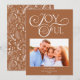 Modern Terracotta (Rust Brown) Joyful Christmas Holiday Photo Cards with a trendy typography and a rustic, yet modern pattern of pine and winter greenery on stylish red clay, earth tone brown. Please contact us at cedarandstring@gmail.com if you need assistance with the design or matching products.