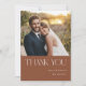 Double sided photo wedding thank you card featuring elegant typography with modern trendy terracotta colour.