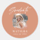 Modern terracotta script photo elegant graduation classic round sticker