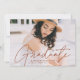 Invite guests to celebrate the grad with our stylish photo graduation invitations. The graduation invitations feature the graduate's photo with "Graduate" in a terracotta brown modern calligraphy script overlay. Personalize the front of the modern graduation invite by adding the graduate's name, school name, and graduation year. The invite reverses to display your graduation party details and a trendy terracotta and white dotted geometric pattern.