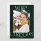 Celebrate the season with our modern trendy photo Christmas Card! This card has a white script photo design and a personal greeting message at the back.
