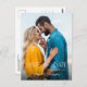 This 2 photo save the date postcard features modern script text which appears on the photo. The design offers 2 photos and custom text for all your details.