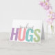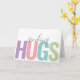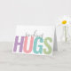A simple modern card packed with kindness and affection, this design has "sending hugs" text in a combination of bold and handwritten script on the front of the card. The multi-coloured text on a clean white background adds to the contemporary look of the card. Inside text is a thoughtful expression that can be ordered as written or personalized with your own desired inside text. This card is not only a great choice for special occasions like Valentine’s Day, it is also a perfect choice for sending a thoughtful card to someone who is ill, needs a pick-me-up, or perhaps a family member or friend who is living alone or in a nursing home. So many possibilities to brighten someone's day with this simple card.