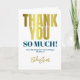 A striking blue and gold modern thank you card. This special thank you card consists of bold and modern typography.