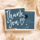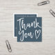 Modern minimalist and stylish white and dusty dark blue business order thank you brush script font with a heart. Add your social media. With an elegant signature script font, all the colours are editable , add your logo.
