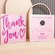 Modern minimalist and stylish retro neon pink business order thank you brush script font with a heart. Add your social media. With an elegant signature script font, all the colours are editable , add your logo.