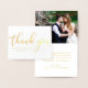 Modern Thank You Wedding Photo Gold Foil Note Card - Gold Text