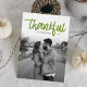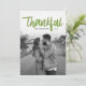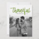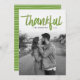 Modern Thankful Green Watercolor Script Photo Holiday Card
