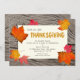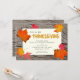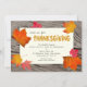 Fall leaves and rustic wood Thanksgiving dinner invitation. Orange, red and gold leaves over a tree bark background with custom text. Upgrade to any specialty paper if you choose. Envelopes are included.