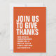 With bold white typography, this orange Thanksgiving dinner invitation is easily customized and sets the tone for a fun and casual turkey day feast