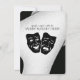 Very elegant theatre design in a modern black and white design. This is not your every day design but a fabulous artistic design that is perfect for a theatrical event. All the text can be customized to say what you want. You can delete areas of text also. The Greek theatre mask for Comedy and Tragedy are on both sides. This creative invitation is sure to entice people and will be a certain conversation piece for years to come.