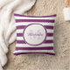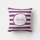 Modern Thick Stripes Monogram and Name in Purple Throw Pillow