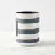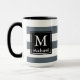 Modern and sophisticated thick white stripes with custom other stripes colour. Black modern style monogram square and personalized text!