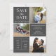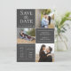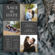 Announce your wedding day with this Modern Three Photo Collage Save the Date Announcement. Save the Date design features a modern and minimalist layout and three photo placements for the happy couple. Add a photos and wedding details to customize. Background design features a simple geometric pattern.