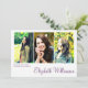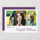 A crisp, clean, modern design features spaces for three large photos on the front and one smaller photo on the back. Available in a variety of colour schemes, this features pretty purple and white. A contemporary look that's perfect for your young graduate. Shown as a graduation party invitation, all text lines can be customized to easily change to an announcement instead.