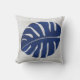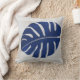 Hand-painted blue tropical leaf on a cushion to accent your decor