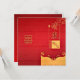 Very unique Chinese wedding invitation features a traditional Chinese wedding setup with a double happiness logo on the left and two Chinese characters meaning "invitation" on the right against a wood-textured gradient red background. Add couple's initials inside the square block and your wording on the back of the card. Feel free to change the font, text colour, size of the text and text placement... Fully customizable.