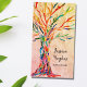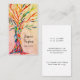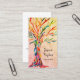 This unique business card is decorated with a Tree of Life design on a coral/beige background.