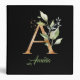 Modern trendy A monogram green and gold foil 3 ring binder personalized with name, can be used for Bridal Shower, Baby Shower, Wedding Engagement, Anniversary or Birthday event celebration party.