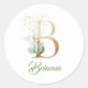 Modern trendy B monogram greenery and gold foil Classic Round Sticker