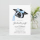 Modern Trendy Blue Bow Graduation Cap Graduation Invitation