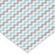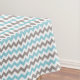 This modern table cloth features a trendy chevron pattern in blue, grey, and white.