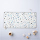 This desk mat features a trendy terrazzo pattern in black, grey, and blue shades on a white background. The colours are fully customizable by clicking on Edit design.