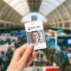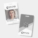 Modern and trendy photo id badge. Our design features a modern and trendy design. Customize with photo, name, logo, and optional employee id #. The reverse side features a trendy geometric tri-colour design with a logo and optional qr code. (Colours can be changed to suit your brand.
