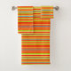 Introducing a delightful bath towel set design with a touch of elegance, showcasing captivating horizontal stripes in a palette of yellow, orange, red, green, and blue. Embrace the vibrant simplicity of this design and elevate your bathing experience with a splash of vibrant colours.