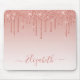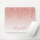 Modern Elegant Fashionable and Trendy Rose Gold Glitter Mouse Pad personalized with your Name. Stylish Script. Dripping Glitter with sparkles.