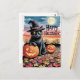 Modern Trendy Halloween Pumpkins and Black Cat Postcard