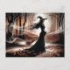 Modern Trendy Halloween Witch in Forest Postcard
