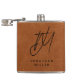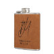Simple monogrammed flask features a modern minimalist design with brushed script initials with your name below on a sable brown distressed leather look textured background. Perfect for birthdays, graduation, retirement, weddings and more.