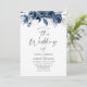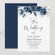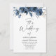 Modern Trendy Navy Blue Watercolor Floral Wedding Invitation