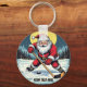 Modern Trendy Santa Playing Ice Hockey Custom Keychain