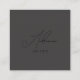A beautiful black on dark grey script design featuring modern trendy font. A simple and professional way to introduce your business. QR code, your own social media icons can be customized in this business card. Personalize your details to create your own unique business card.