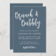 Modern Trendy Script Brunch Bubbly Bridal Shower Invitation in Dark Dusty Blue
